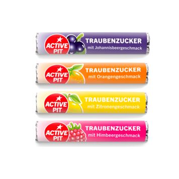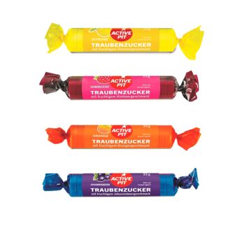 Unsere Active Pit Traubenzuckerbonbons sind lecker und liefern schnelle Energie. Sie sind die idealen Fitmacher bei jeder Art von körperlicher oder geistiger Anstrengung. Nicht umsonst genießen Traubenzuckerbonbons einen so hohen Stellenwert bei den Nahrungsergänzungsmitteln.